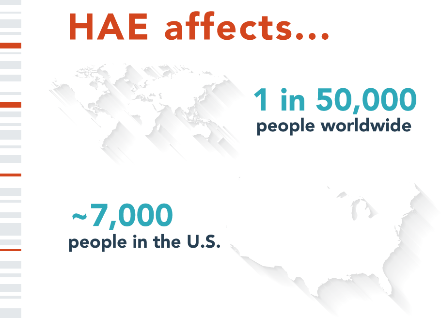 HAE affects about one in 50,000 people worldwide. In the U.S. alone today, approximately 7,000 patients are receiving treatment for their HAE. Many patients only achieve partial clinical control and make lifestyle modifications to manage fear and anxiety.